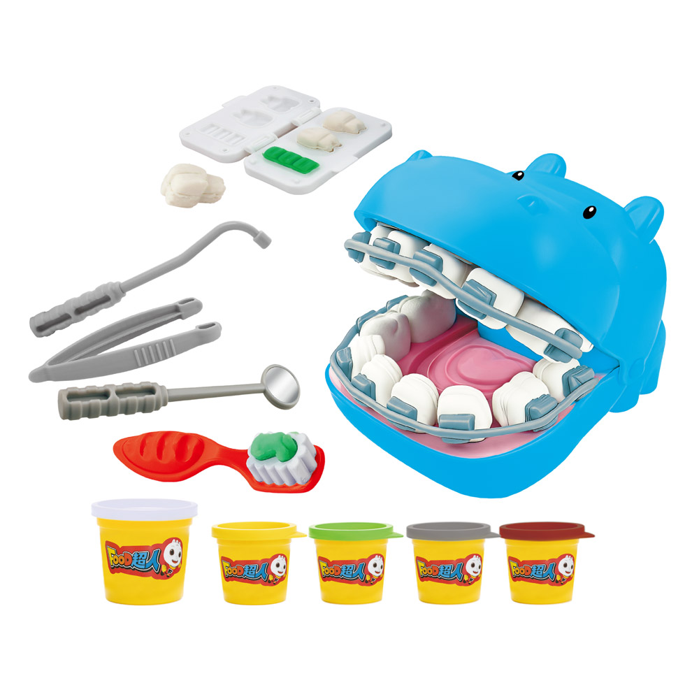 《FOOD超人 趣味牙醫診所小麥黏土》結合角色扮演與黏土創作遊戲,讓孩子透過操作牙醫工具、製作牙齒模型與模擬看診情境,在遊戲中認識牙齒構造與口腔清潔的重要性。孩子可以替牙齒檢查、清潔與修復,邊玩邊建立良好的生活習慣與健康觀念。